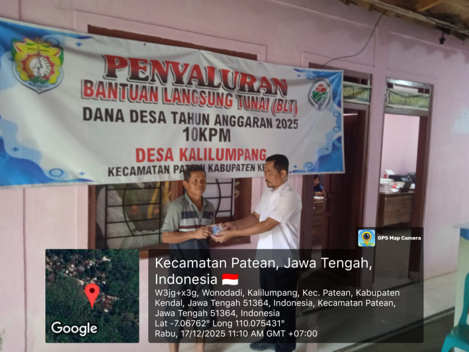 Pada hari Selasa Tanggal 17 Desember 2025, Pemerintah Desa Kalilumpang telah melaksanakan penyaluran BLT DD tahap IV. Kegiatan ini dilaksanakan di Balai Desa Kalilumpang dan disalurkan kepada 10 Keluarga Penerima Manfaat (KPM). Penyaluran BLT ini merupakan penyaluran yang terakhir di tahun 2025. Setiap KPM menerima Rp 300.000,- setiap bulannya dan diterimakan setiap tiga bulan sekali.