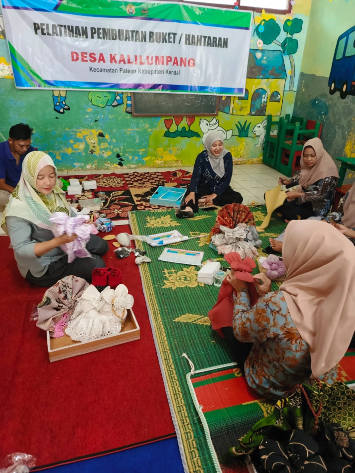 Pada hari Selasa tanggal 9 Desember 2025 telah dilaksanakan kegiatan Pelatihan Pembuatan Hantaran Pernikahan bagi ibu-ibu anggota PKK Desa Kalilumpang. Kegiatan ini bertempat di TK Cahaya Pertiwi 1 Desa Kalilumpang Kecamatan Patean Kabupaten Kendal dan dihadiri oleh 20 orang anggota PKK. Narasumber kegiatan pelatihan ini adalah seorang pengrajin hantaran pernikahan yang bernama Nia Astuti. Selain membuat hantaran, Mbak Nia, nama panggilannya, juga biasa membuat pesanan menghias mahar perikahan, serta menjual berbagai macam makanan seperti bolu, bolen pisang, dan pizza.